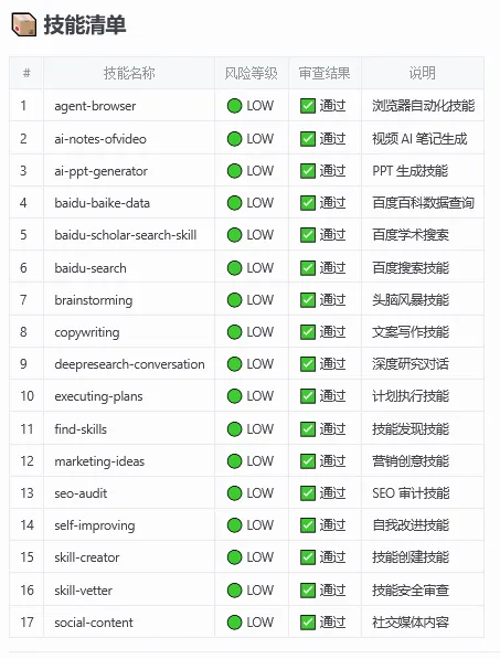- ✅ 官方技能:默认信任