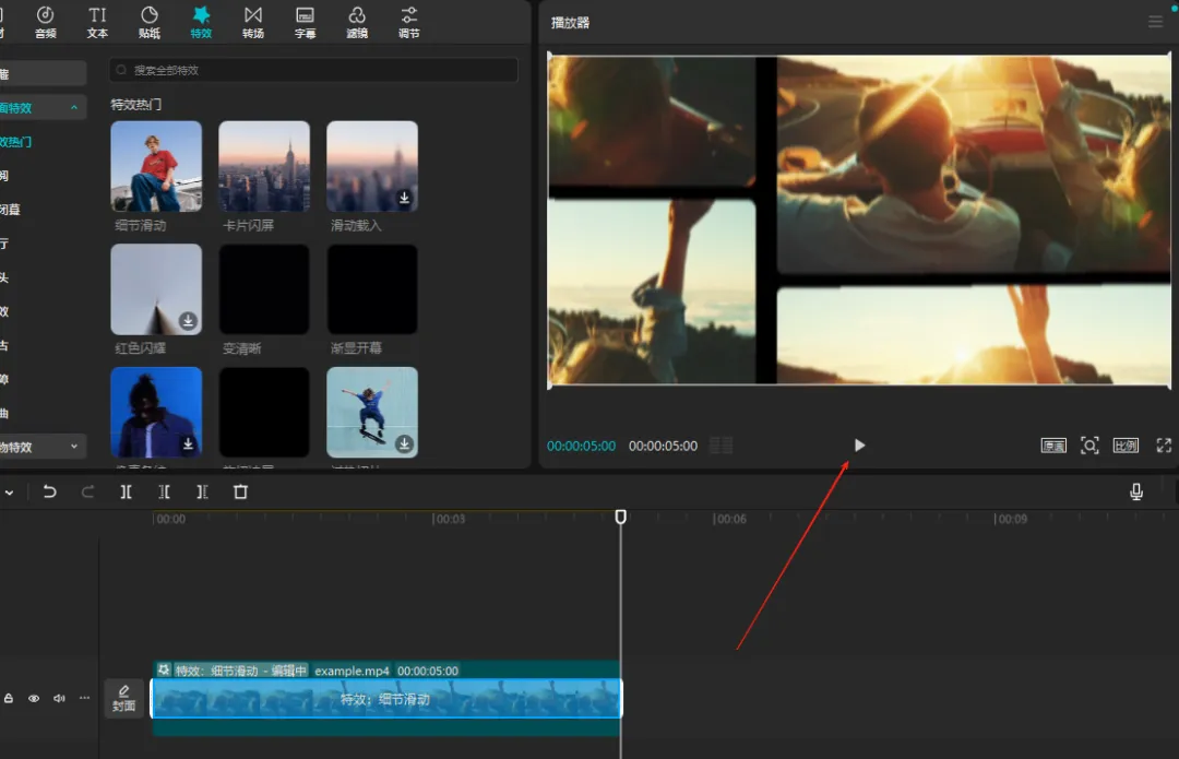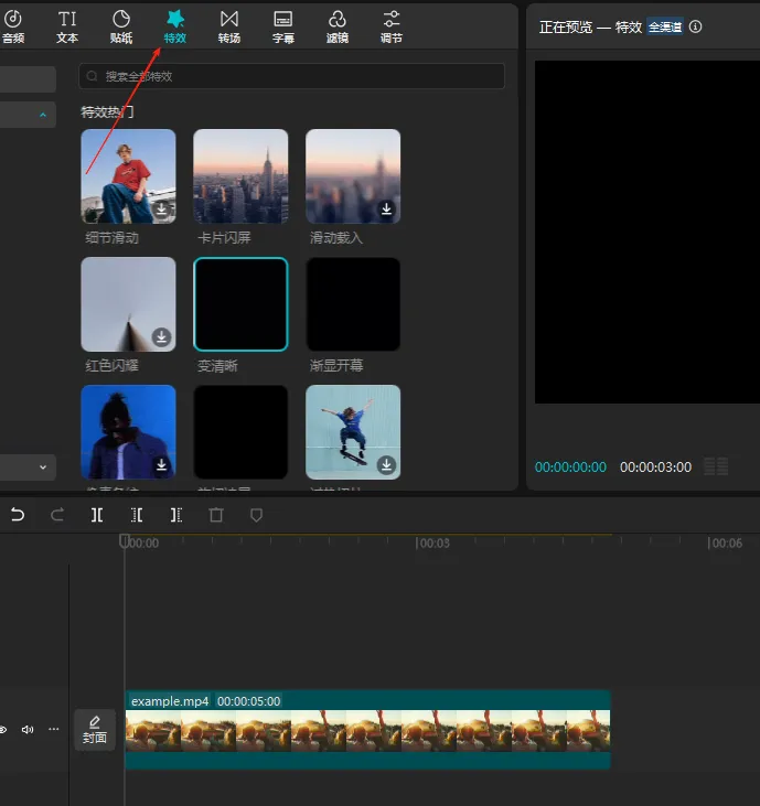 3、选中喜欢的特效,拖入时间线
