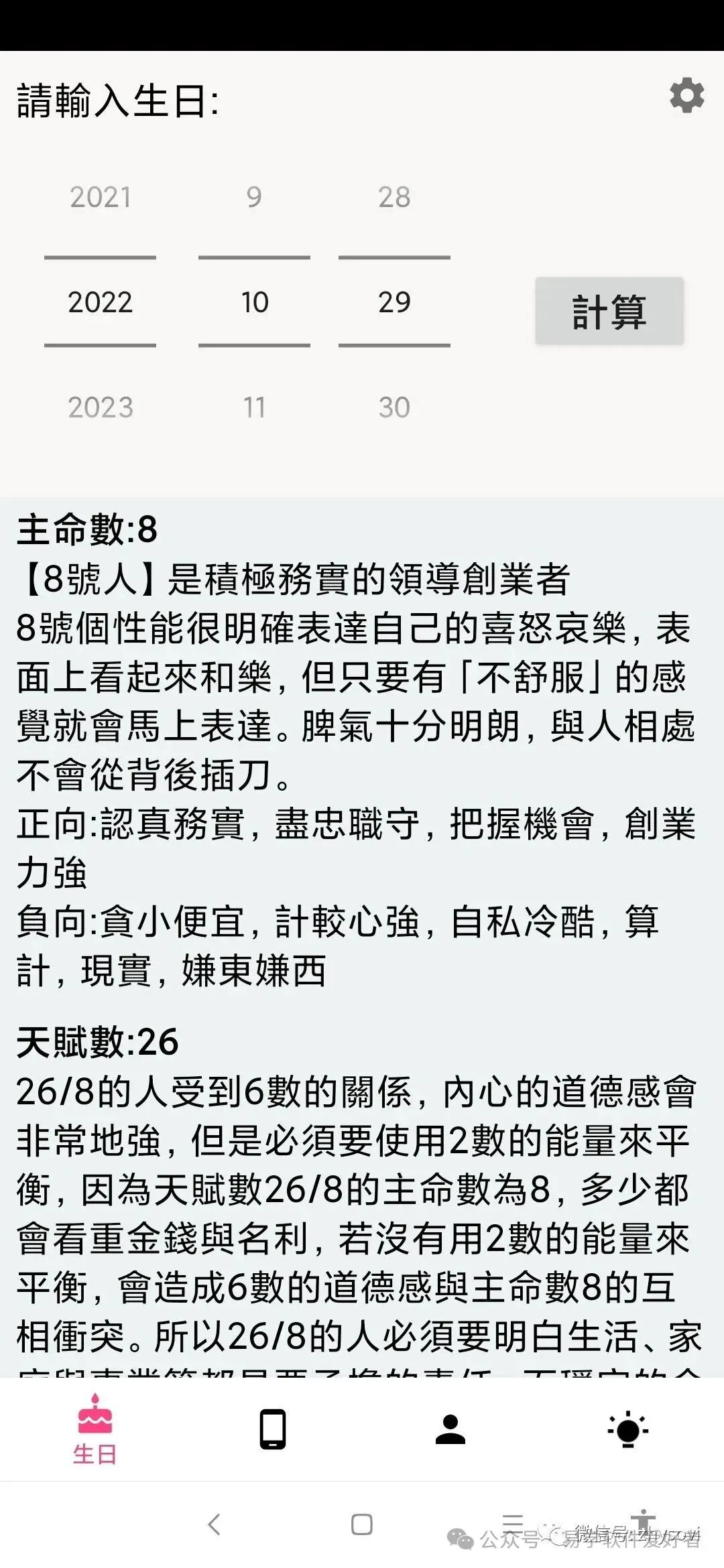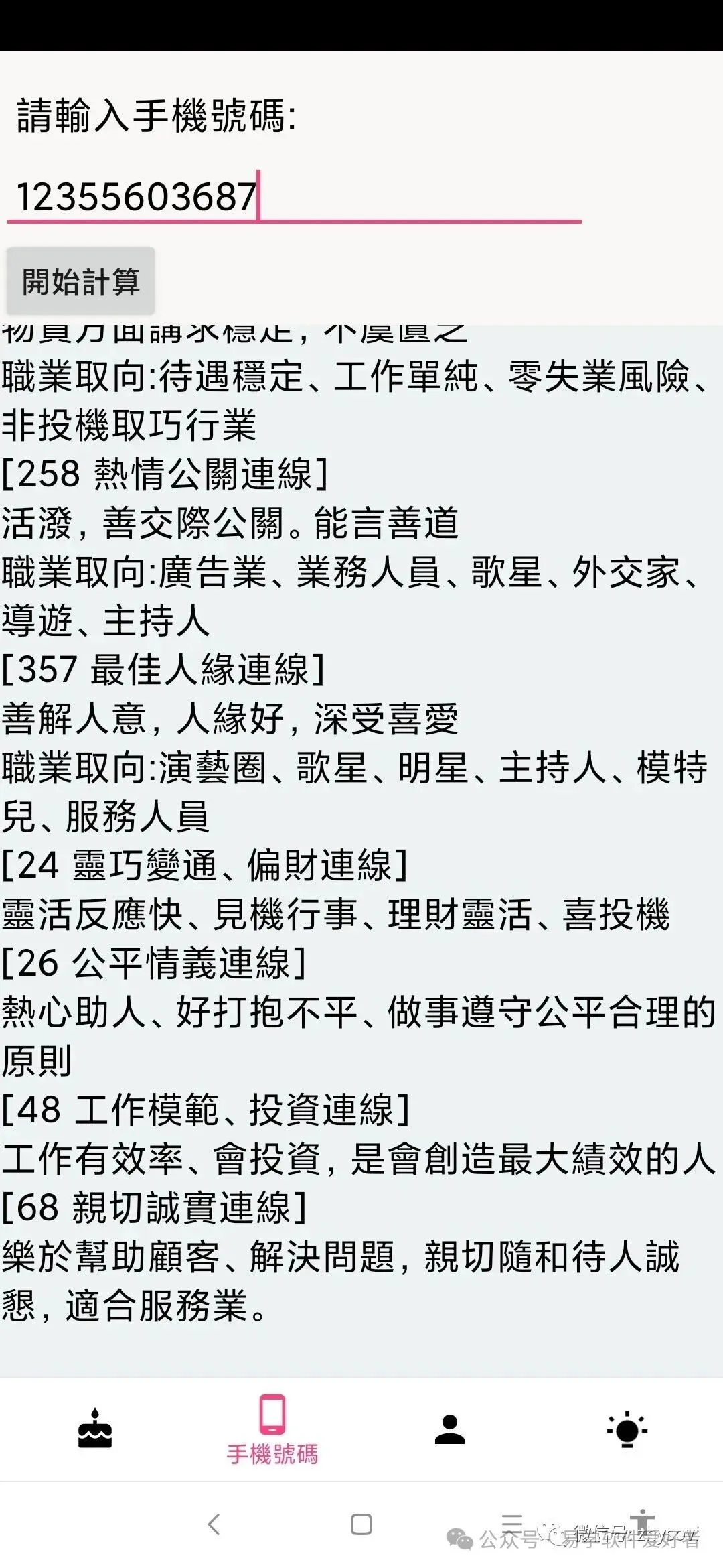 手机版生命灵数预测软件,卖50元,联系微信:A-118774
