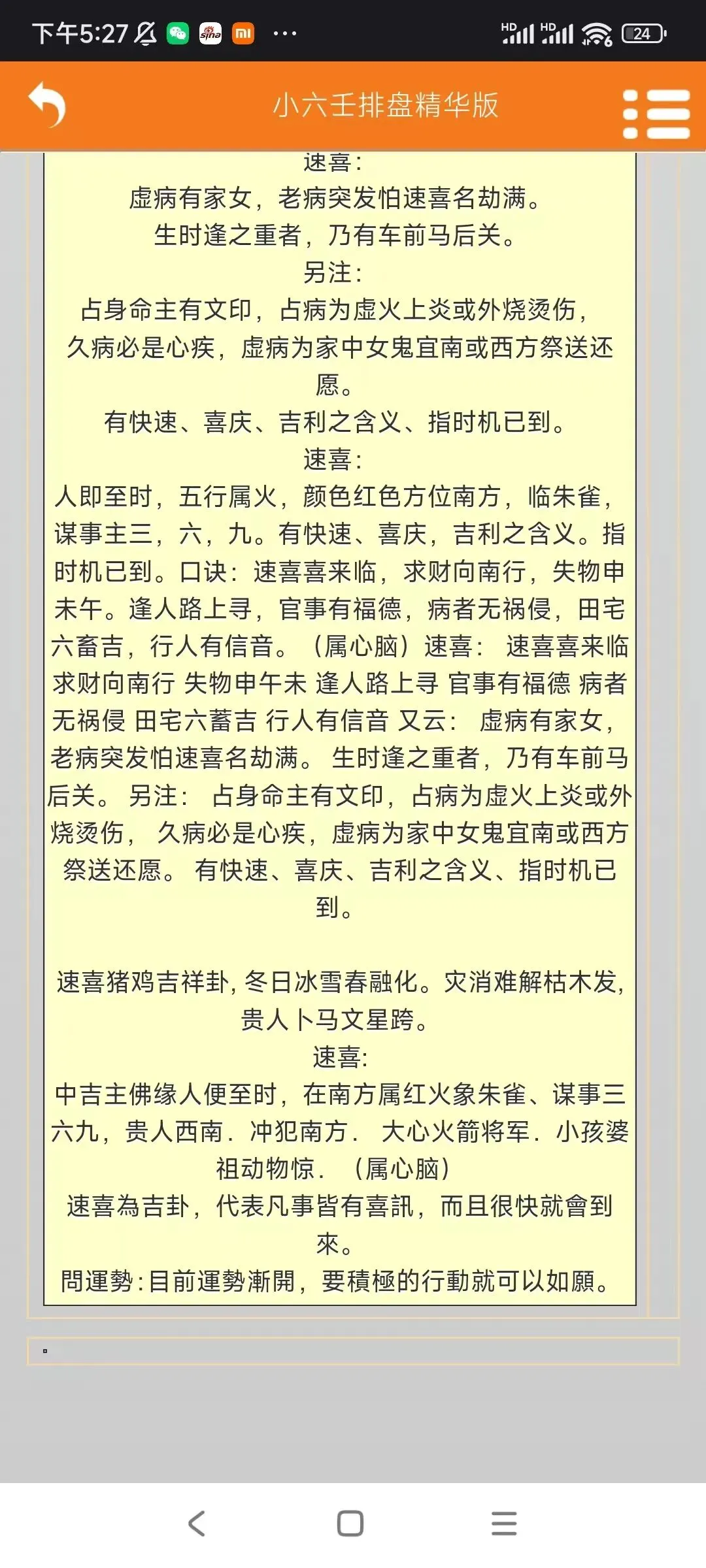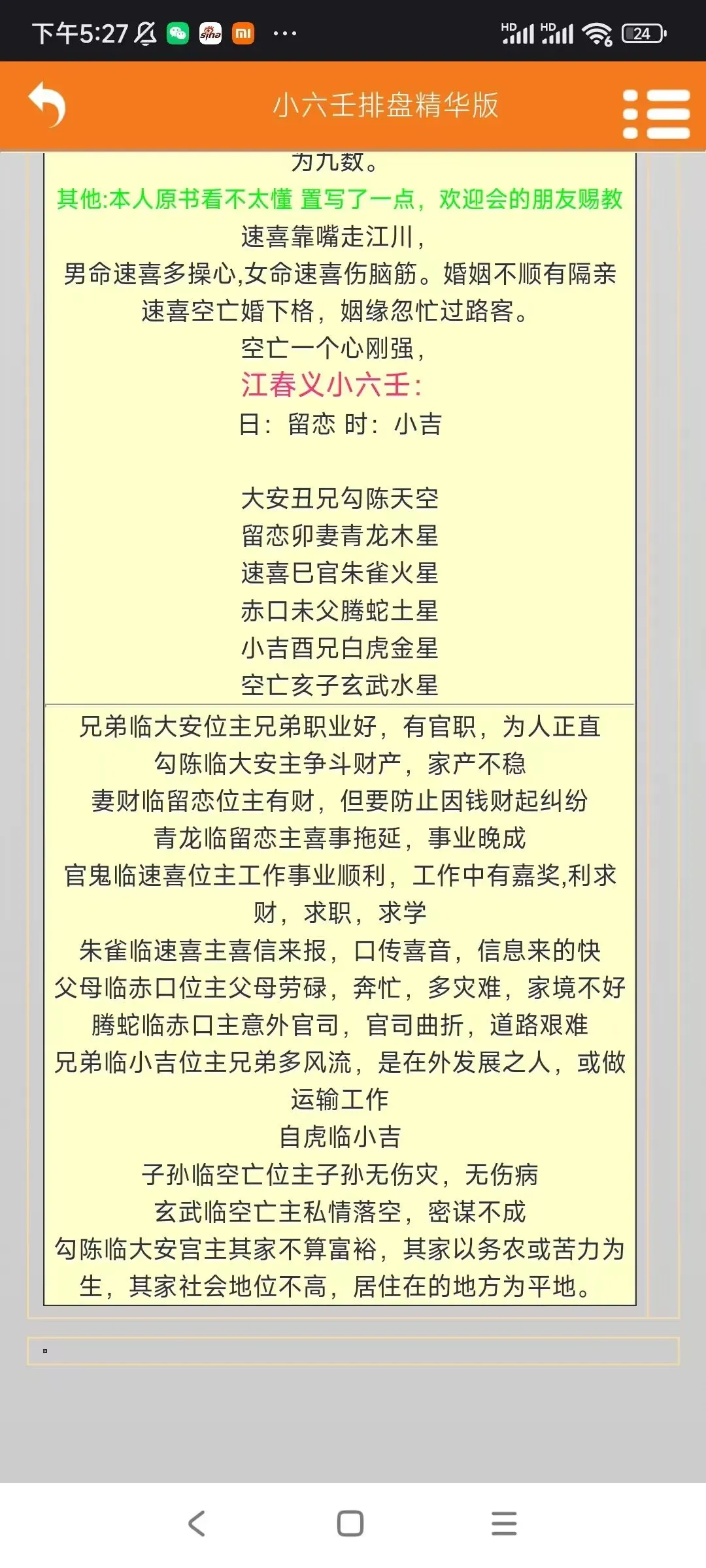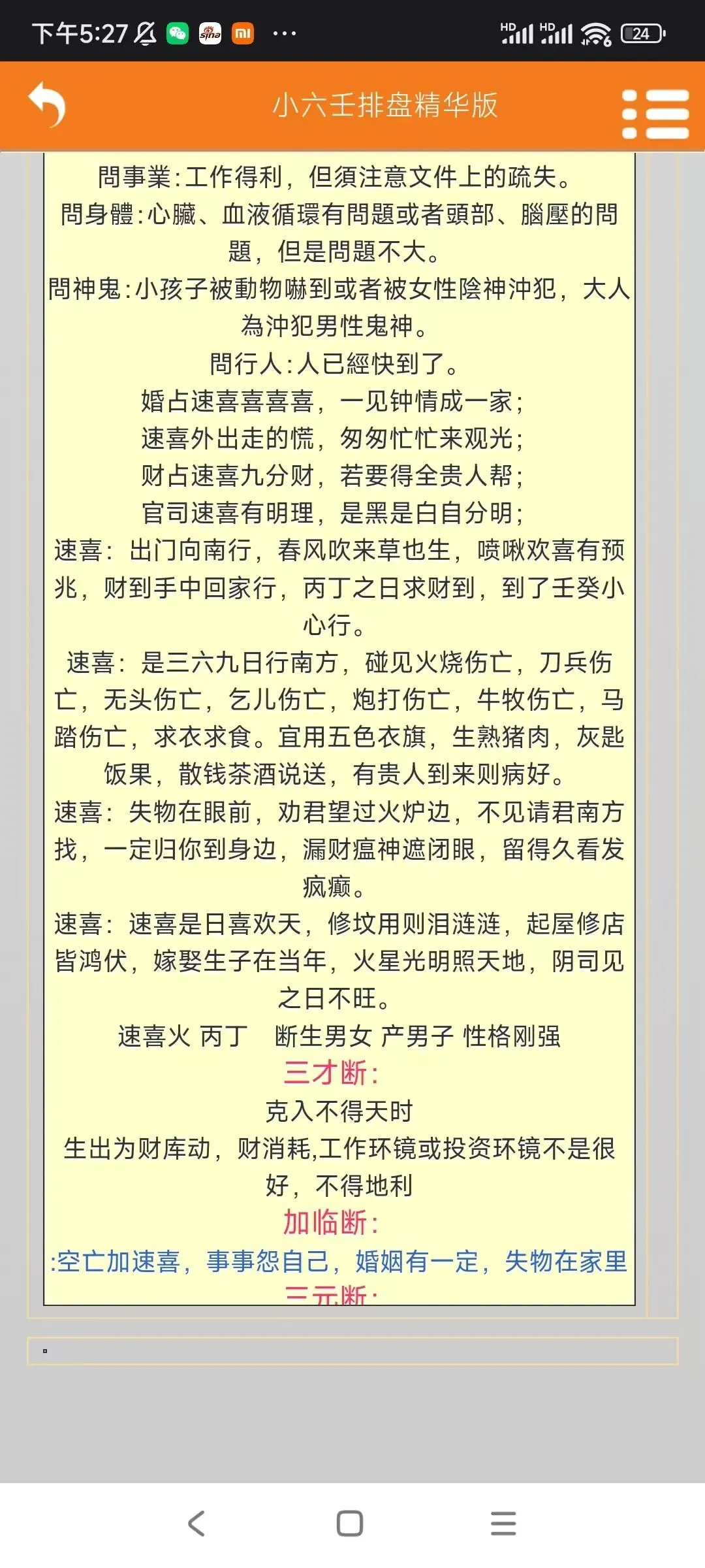 手机版开悟小六壬排盘软件手机版开悟小六壬排盘软件,卖58元,加微信:A-118774软件介绍:软件包括了以下内容:①小六壬速断②道家小六壬③小六壬精华排盘④小六壬月日时断⑤小六壬开悟图⑥道家小六壬资料内容如截图#小六壬