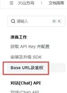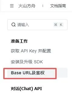 登录 火山方舟平台,进入控制台 → 开通管理。在选择的模型后面点击 接入文档,左边点击 Base URL 及鉴权,找到 Base URL 获取: