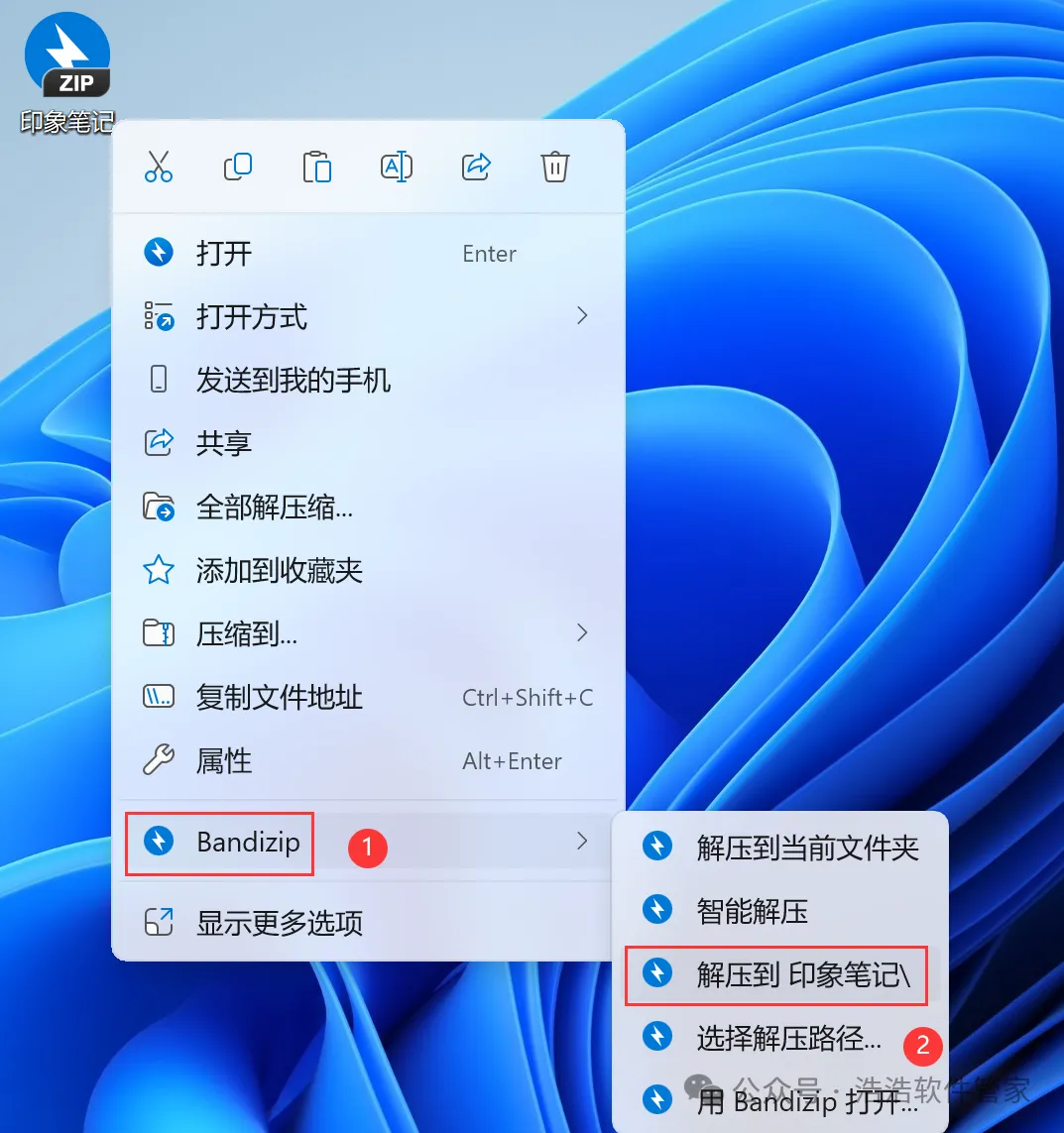 1、下载印象笔记软件安装包到电脑上,右键选择【解压到印象笔记\】