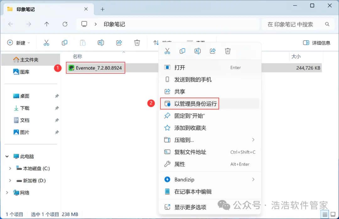 3、找到【印象笔记】应用程序,右键选择【以管理员身份运行】它