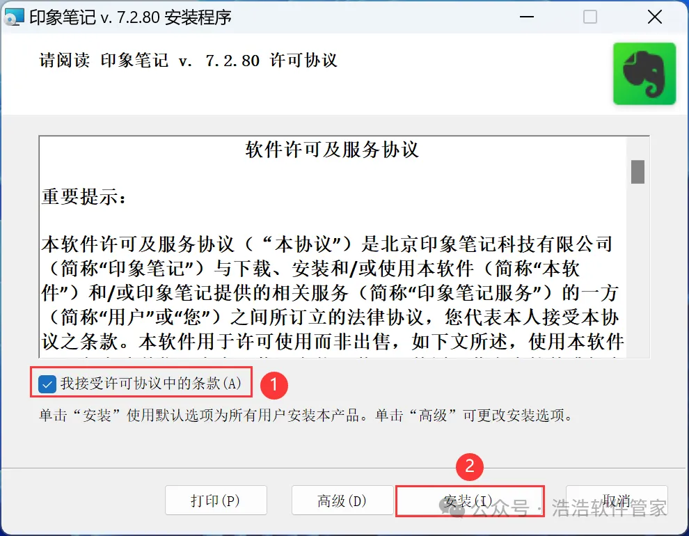 4、勾选【我接受】,再点击【安装】
