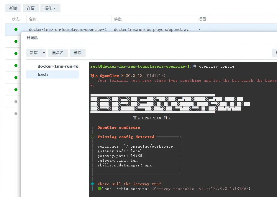 容器名称:openclaw