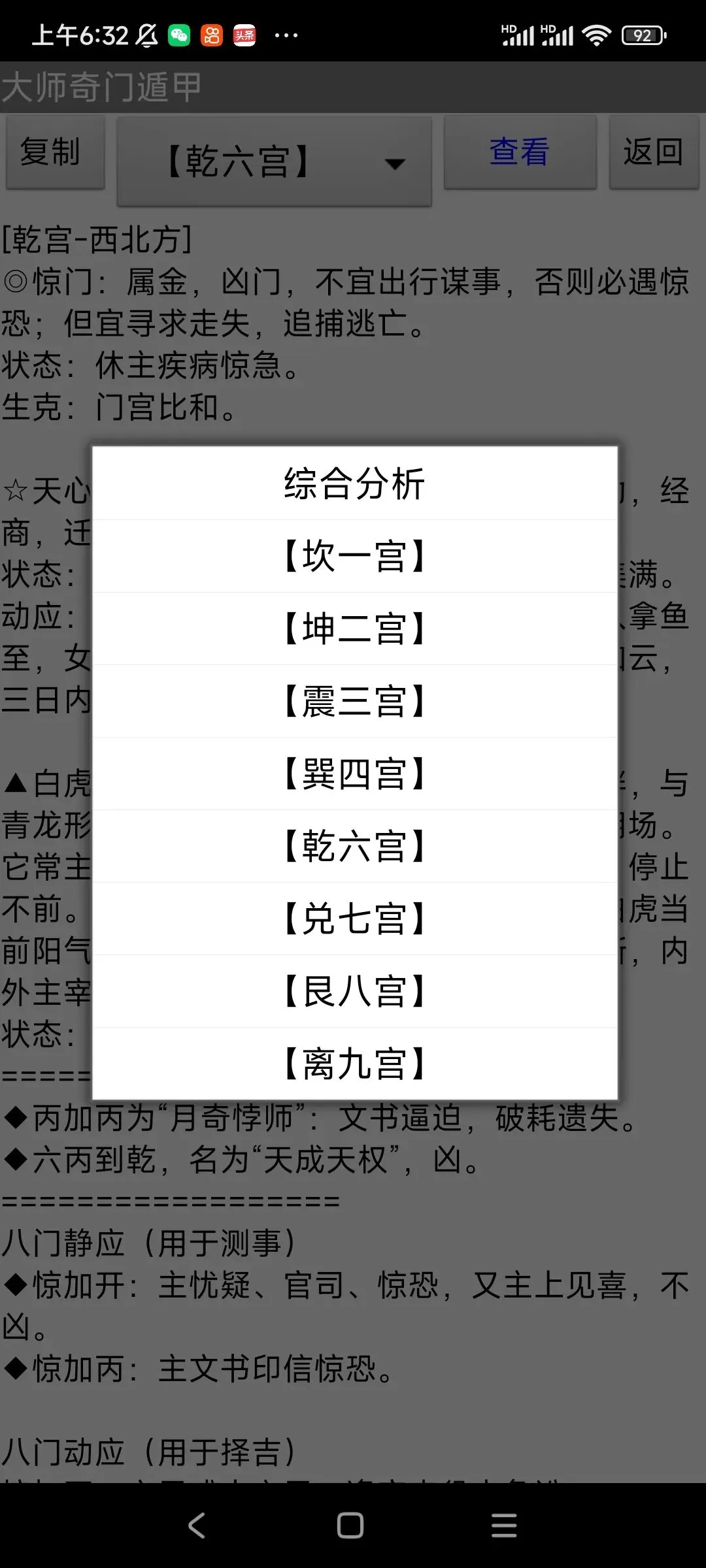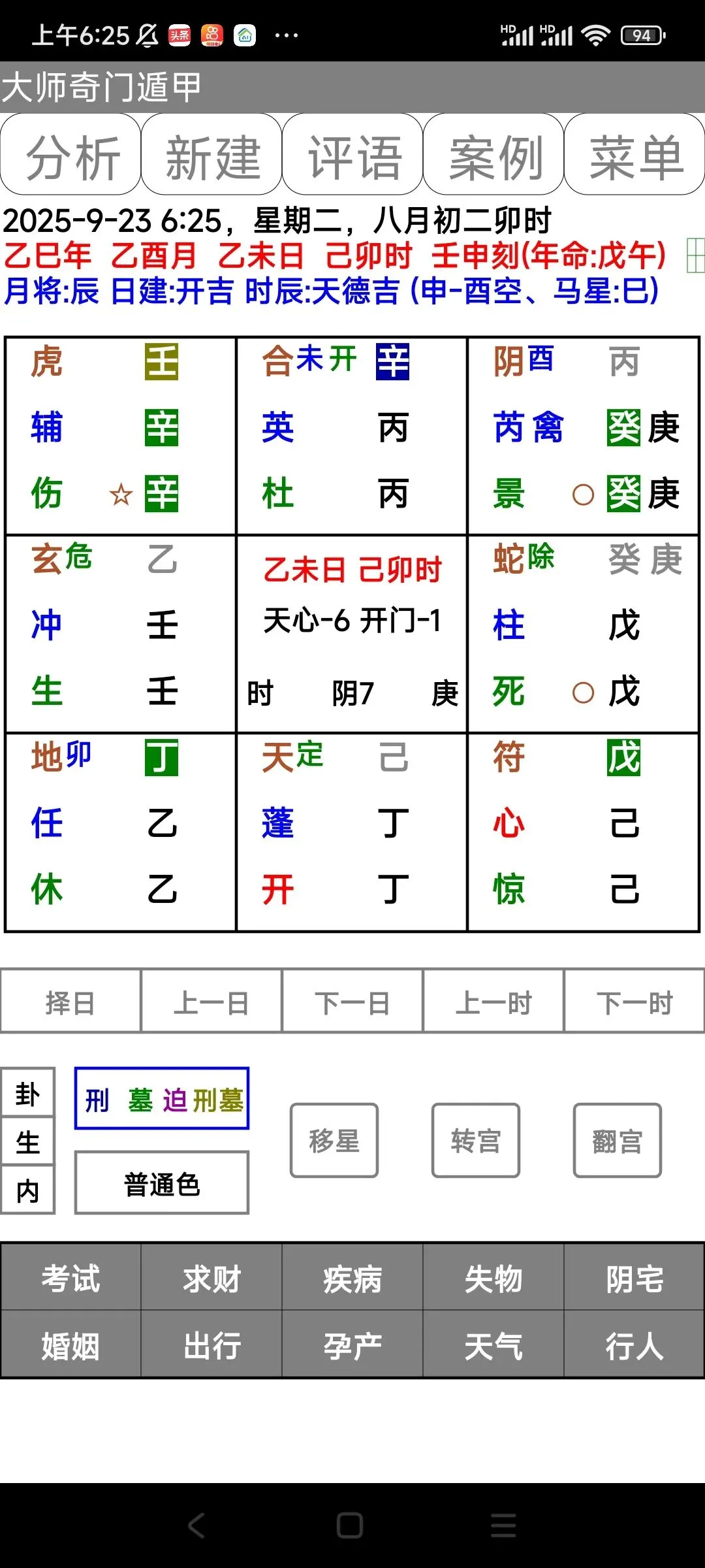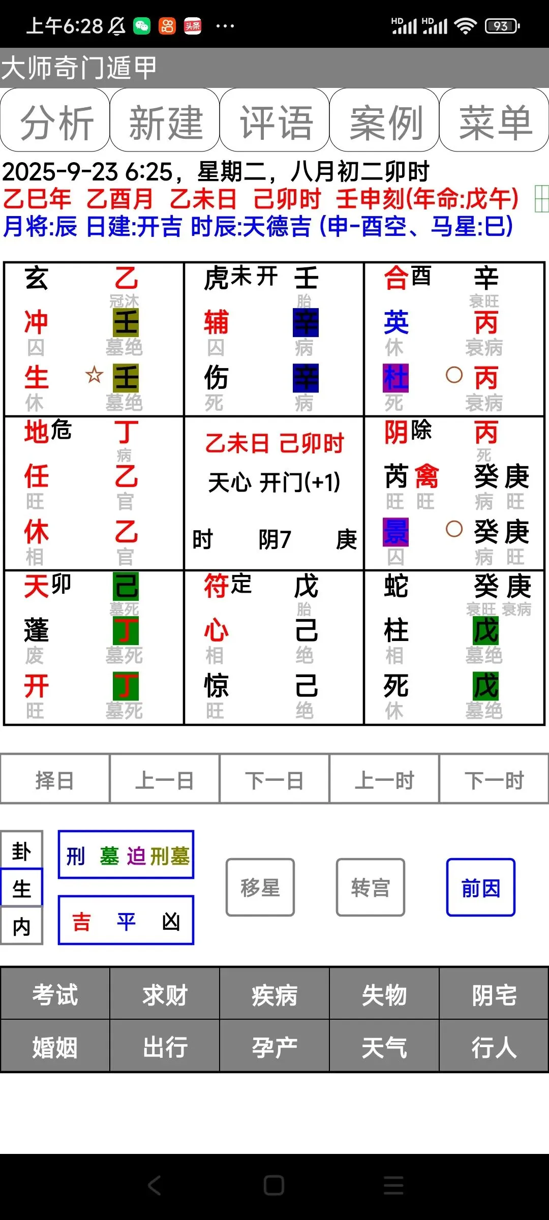 2:时家奇门排好后,双击每个宫,可以看到这个宫的详细分析:十干克应、格“局等。单击每宫右上角选择此宫作为用神宫。