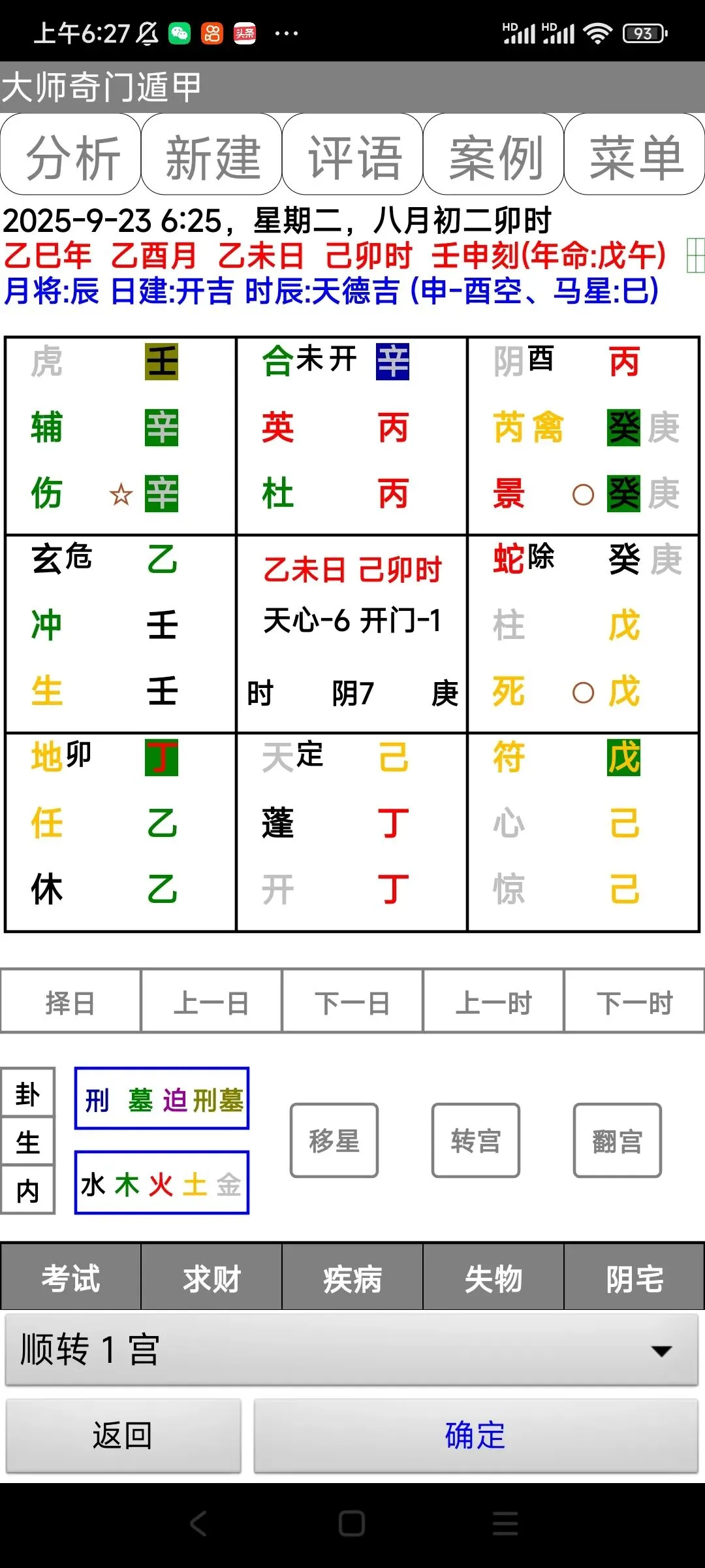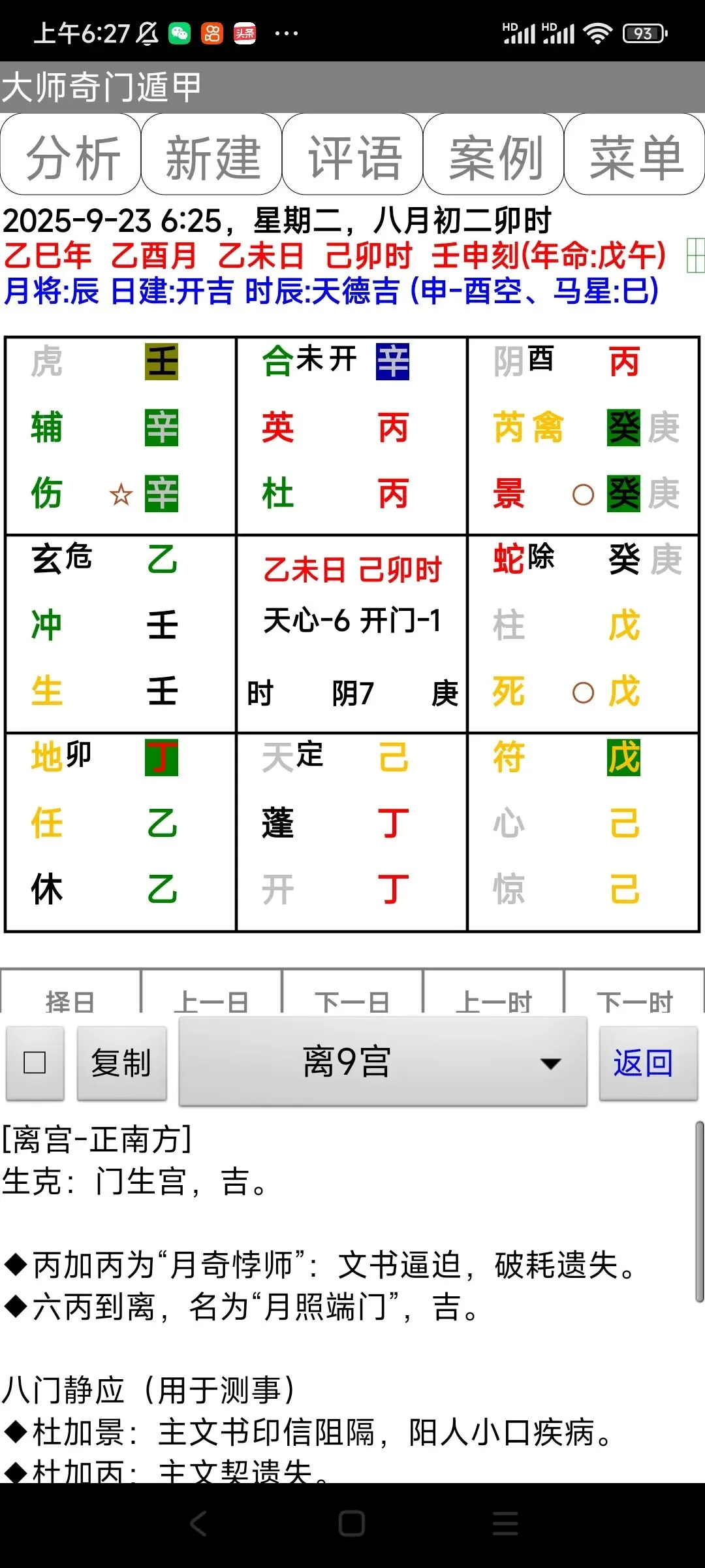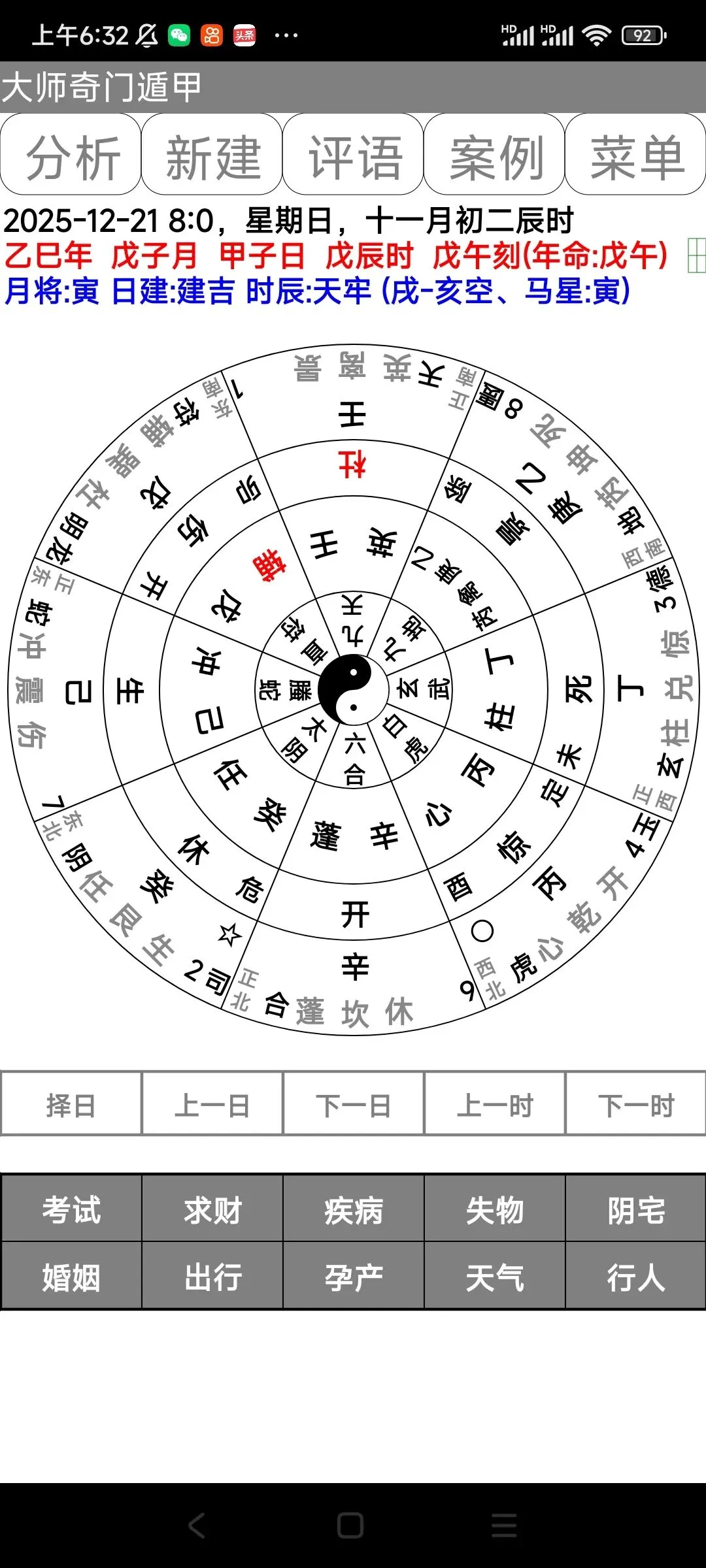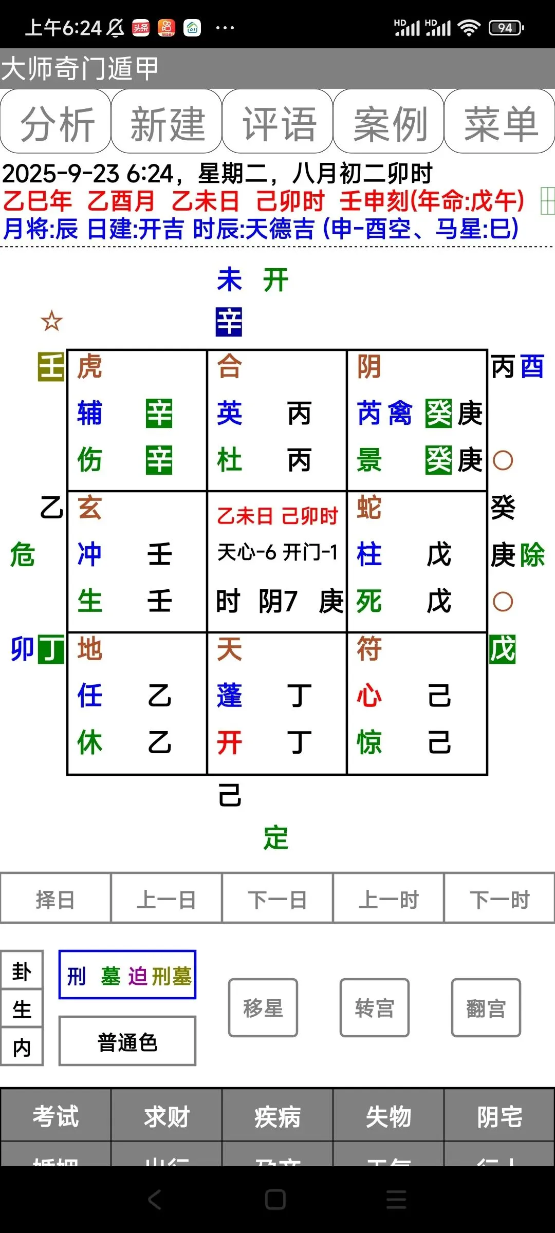 2:时家奇门排好后,双击每个宫,可以看到这个宫的详细分析:十干克应、格“局等。单击每宫右上角选择此宫作为用神宫。