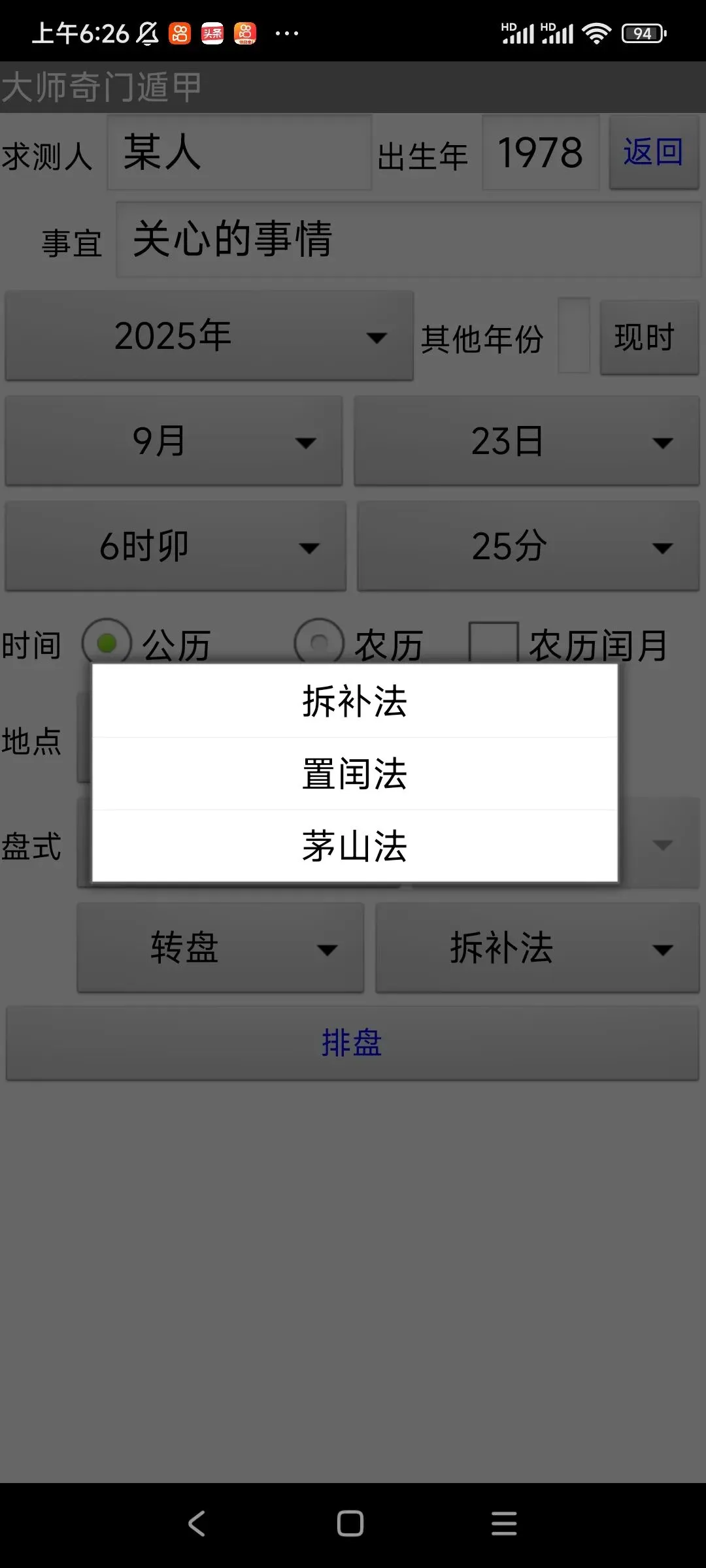 软件支持时家、日家、月家、年家、飞宫小奇门、刻家奇门共6种奇门预测法。有拆补法,置润法,茅山法。有转宫,飞宫。这些选择。
