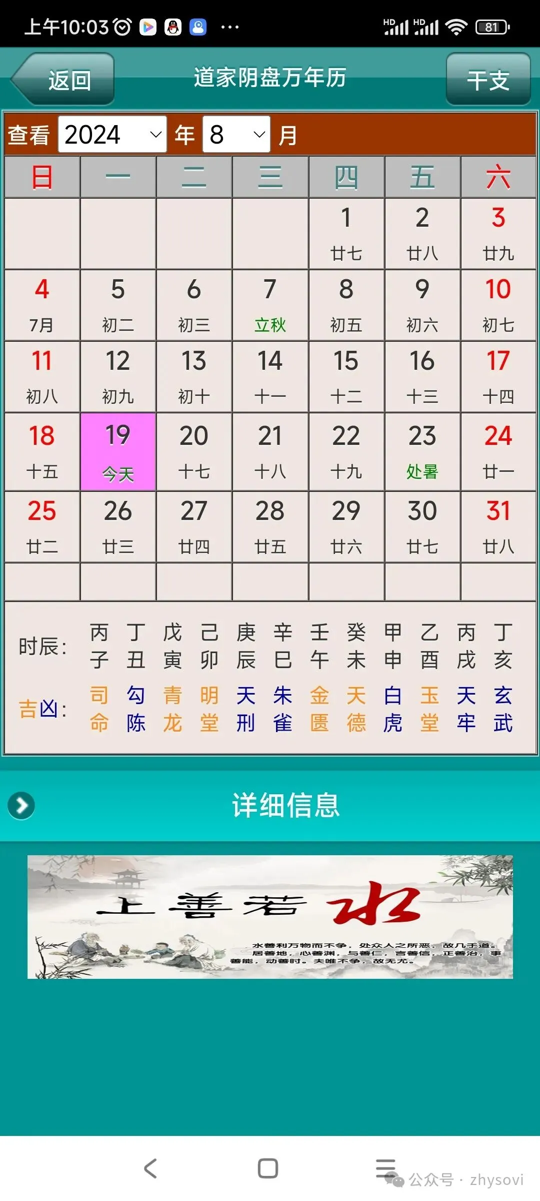 软件包括了道家阴盘奇门排盘、山向奇门(奇门风水)、道家姓名排盘、周易万年历等功能。