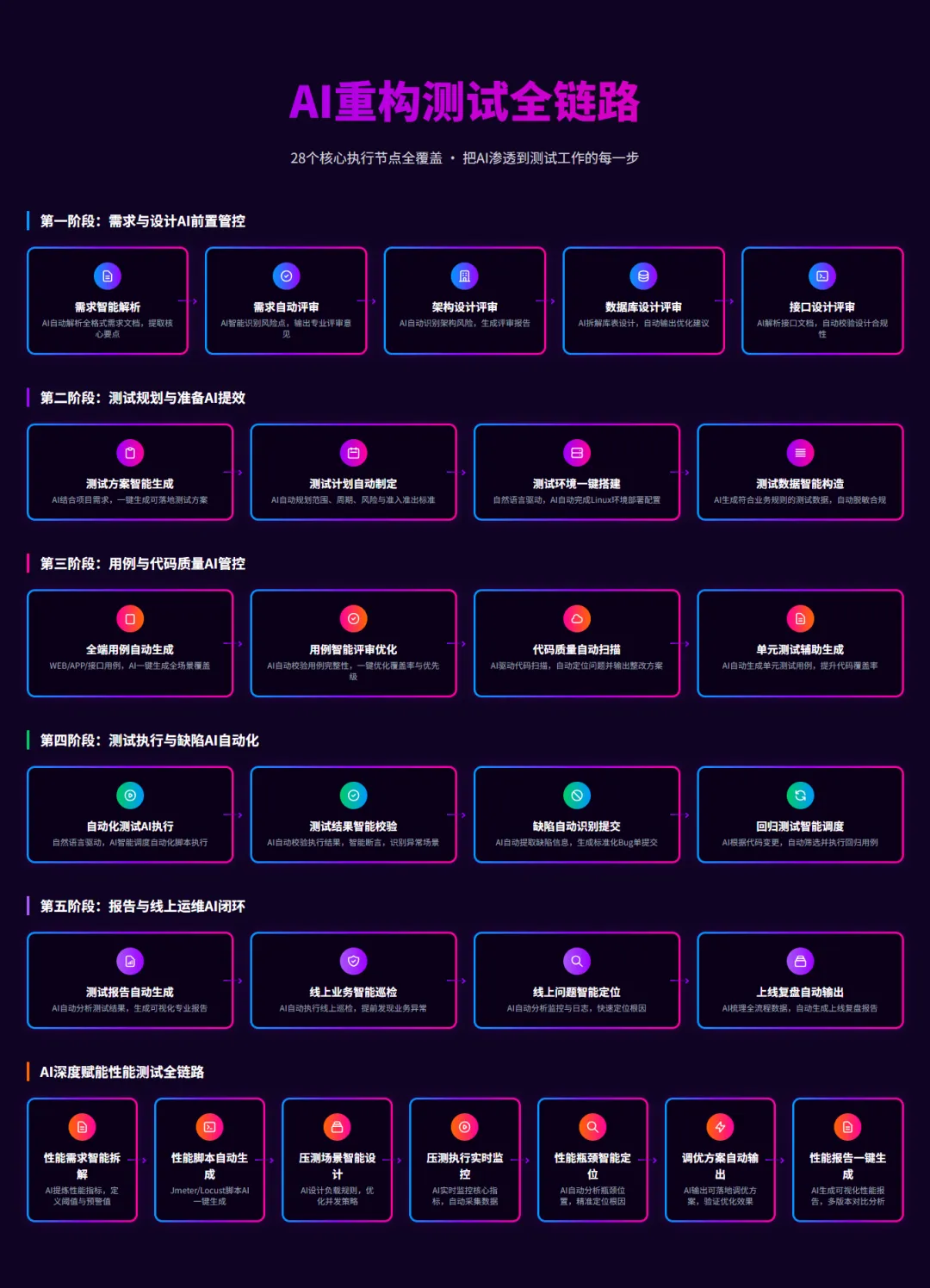 而这一切升级的核心,在于将AI覆盖测试全链路28个核心节点,实现全流程提效!