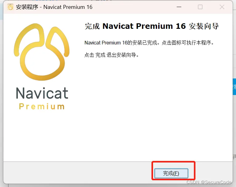 7. 安装完成,注意安装完成后先不要运行navicat。