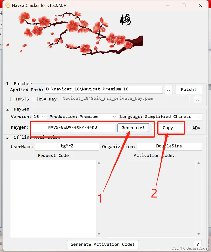6. 先点击“Generate!”,然后“Copy”生成的Keygen。