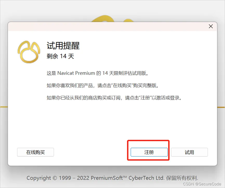 7. 这个时候打开navicat16软件(桌面上有快捷方式),点击“注册”。