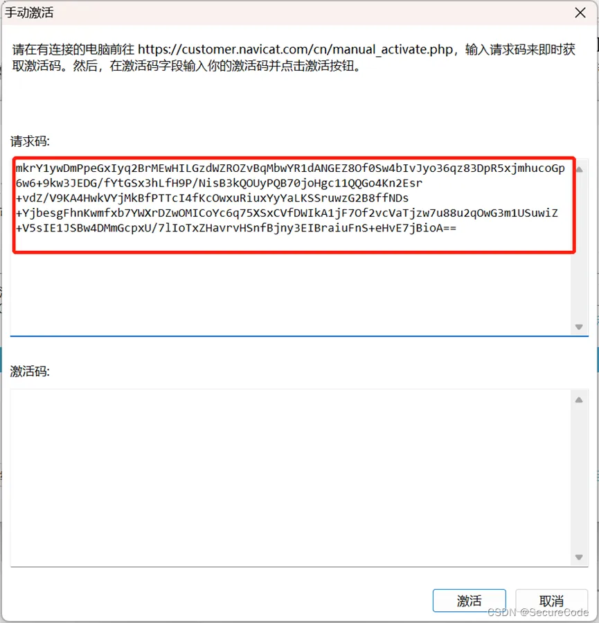 10. 在弹出的窗口中,复制请求码(红色框起来的就是)。