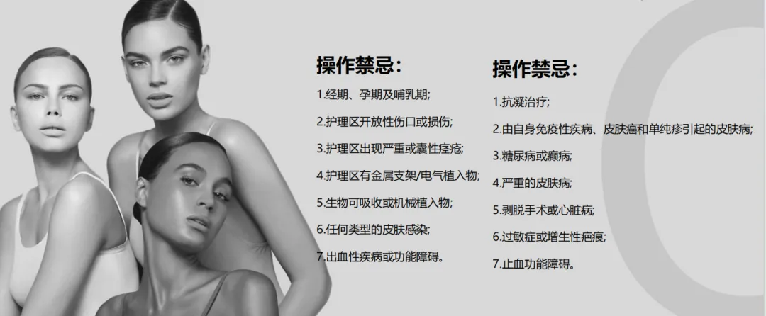 3. 敏感肌、孕妇、皮肤有破损或炎症的客户,需提前评估,避免使用高功率和冷热刺激模式,部分项目可暂停操作,确保服务安全;
