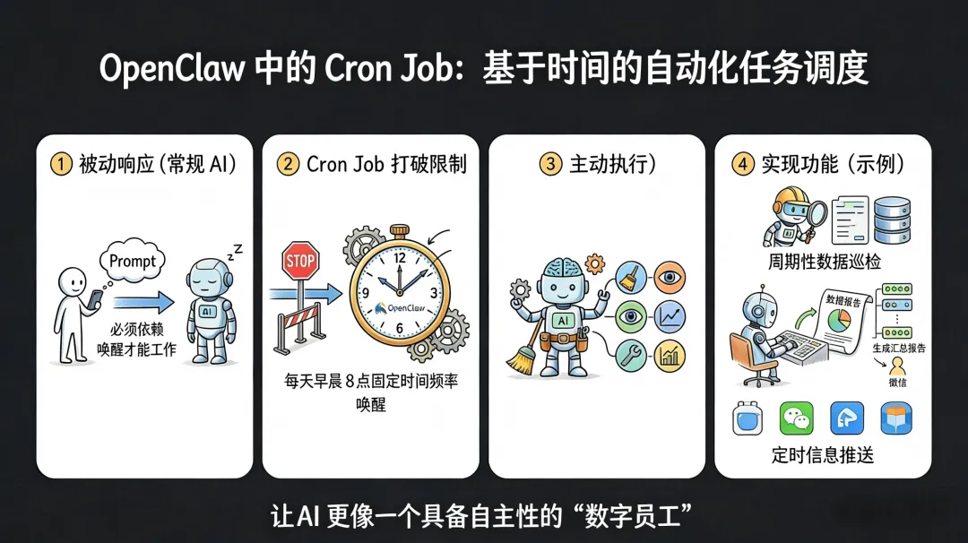 🔹 CronJob(定时任务):AI 主动打工