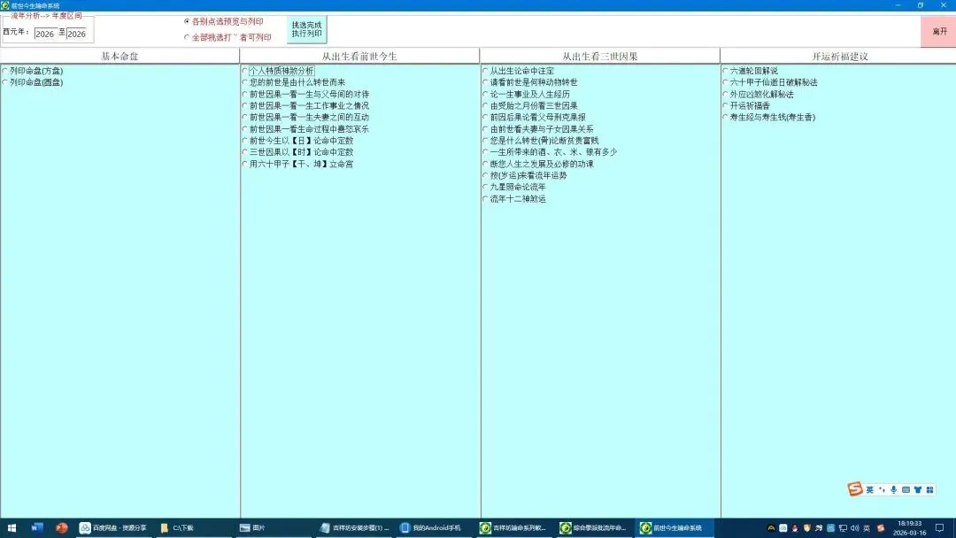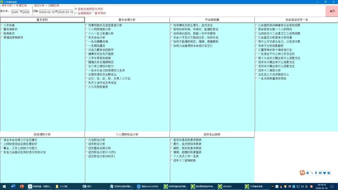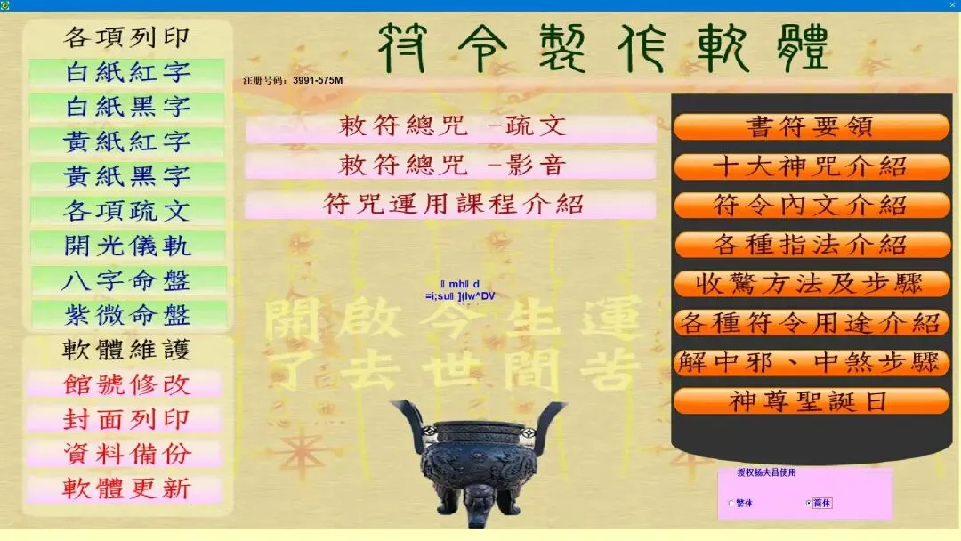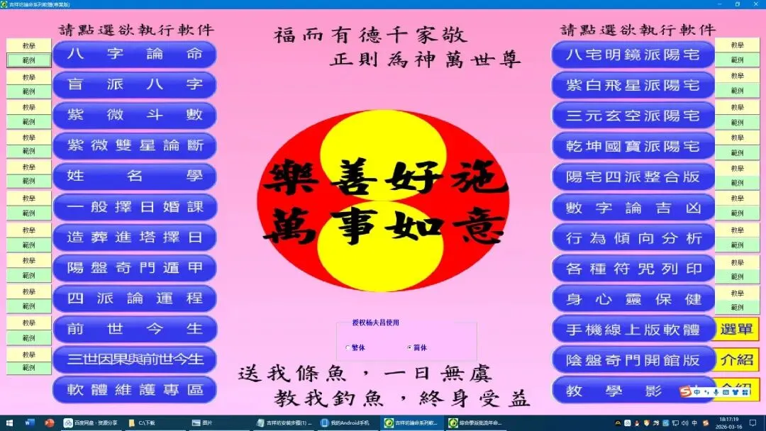 20、符咒等等 功能。其中最近添加了价值25000台币的紫微双星。是不可多得的非常专业的周易预测调理软件!还可以进行馆号修改、封面打印六、吉课书表格式设定等功能!软件只要有 windows电脑,即可安装使用!