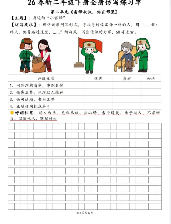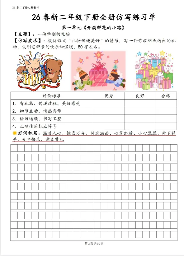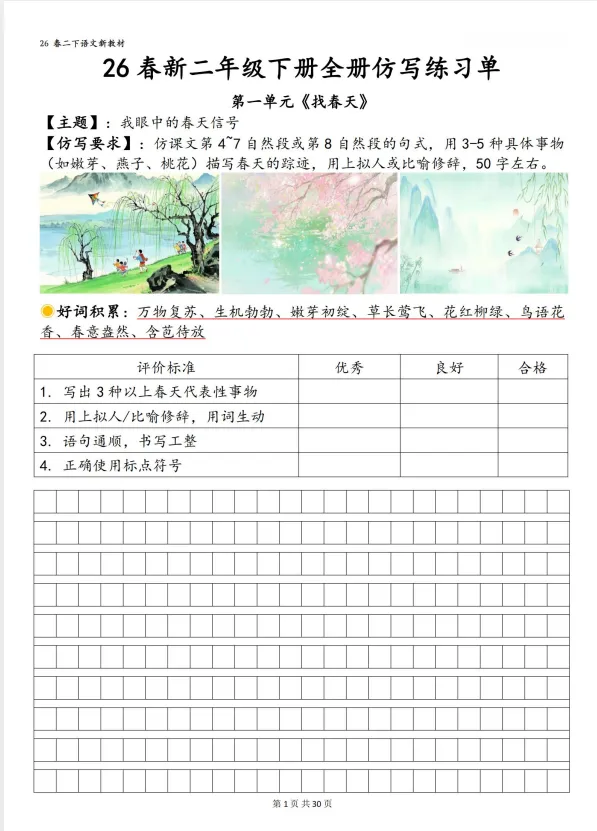 今天给大家准备好了!~26春二下语文仿写小练笔丨可下载打印