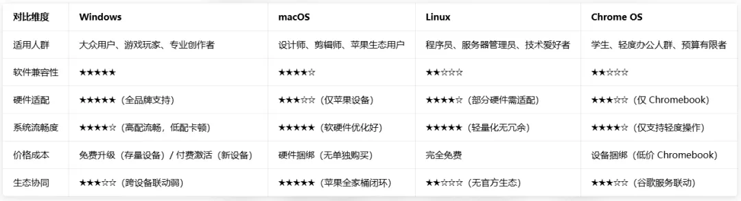 核心短板:普通软件兼容性差(无主流游戏 / 办公软件)、操作门槛高(适合技术人员)