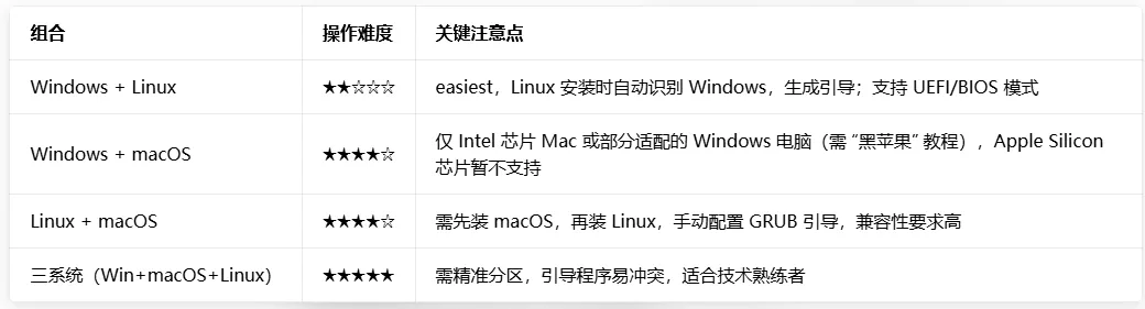 还可以,一台电脑完全支持多系统共存,核心是通过 “磁盘分区 + 引导管理” 实现,最常见的组合是「Windows + macOS」「Windows + Linux」,操作难度和兼容性因组合不同有差异,下面信息精简实用: