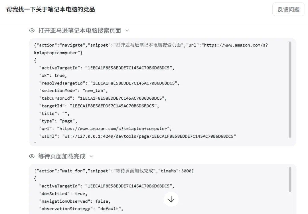 这里我是让他直接去亚马逊搜索了笔记本类的相关竞品,我就只用了一句极其简单的话。
