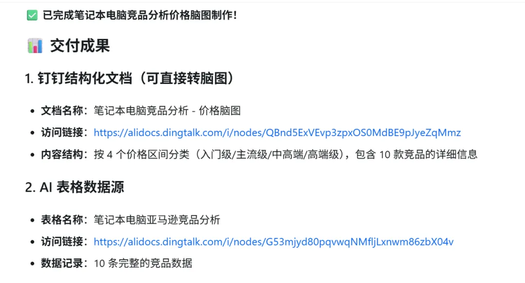 一气呵成,直接给我详详细细的存到了钉钉原生自带的AI云端表单上,顺带还给我做了份脑图。