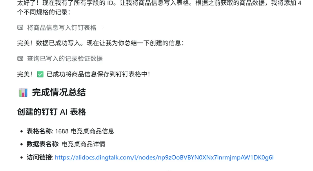 昨天我在测的时候,也确确实实被悟空调用钉钉原生AI表格能力给惊艳到了。