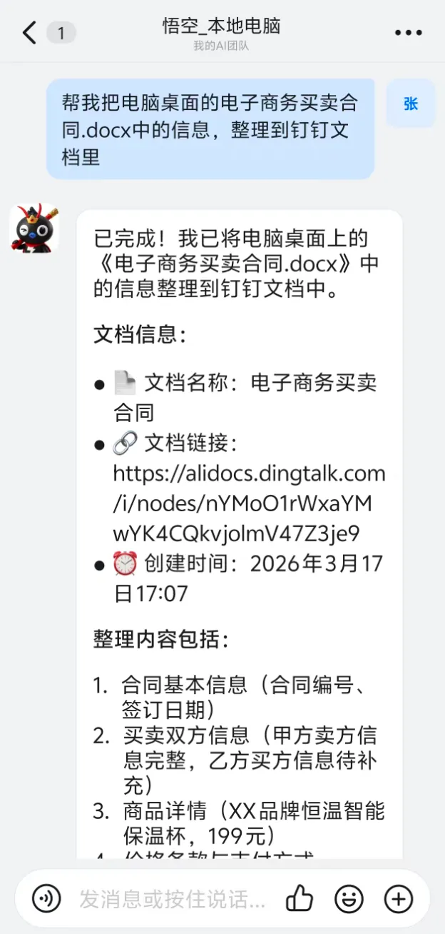 并且对外宣称,一个人用上悟空,就能调动钉钉协同能力,完成过去一个团队才能做的事的。