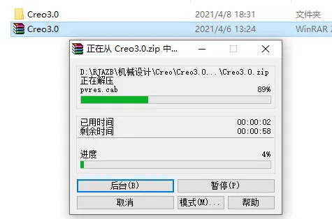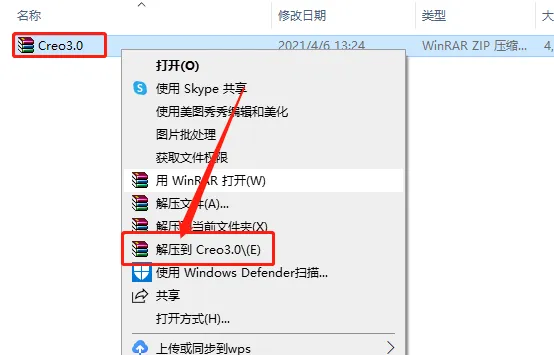 1.打开下载的Creo软件安装包,鼠标右击压缩包选择【解压到Creo3.0】。