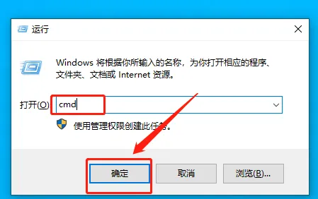 3.使用快捷键WIN+R打开运行面板,然后输入【cmd】,点击【确定】。