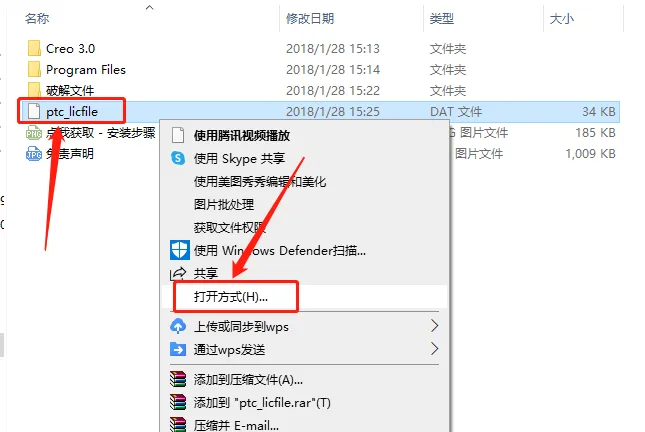 7.鼠标右击【ptc_licfile】选择【打开方式】。