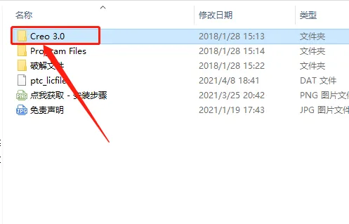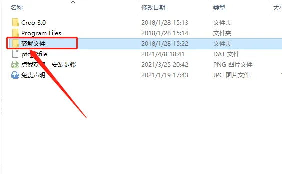 22.返回到解压的【Creo3.0】文件夹中,然后打开【破解文件】。
