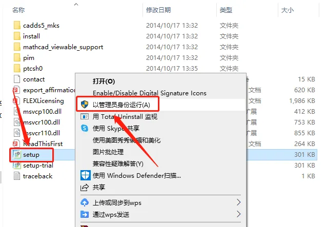 14.鼠标右击【setup】安装程序,选择【以管理员身份运行】。