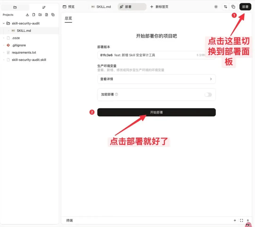 假如你对的 Skill 感到满意,也可以部署到扣子,就可以自己使用了。