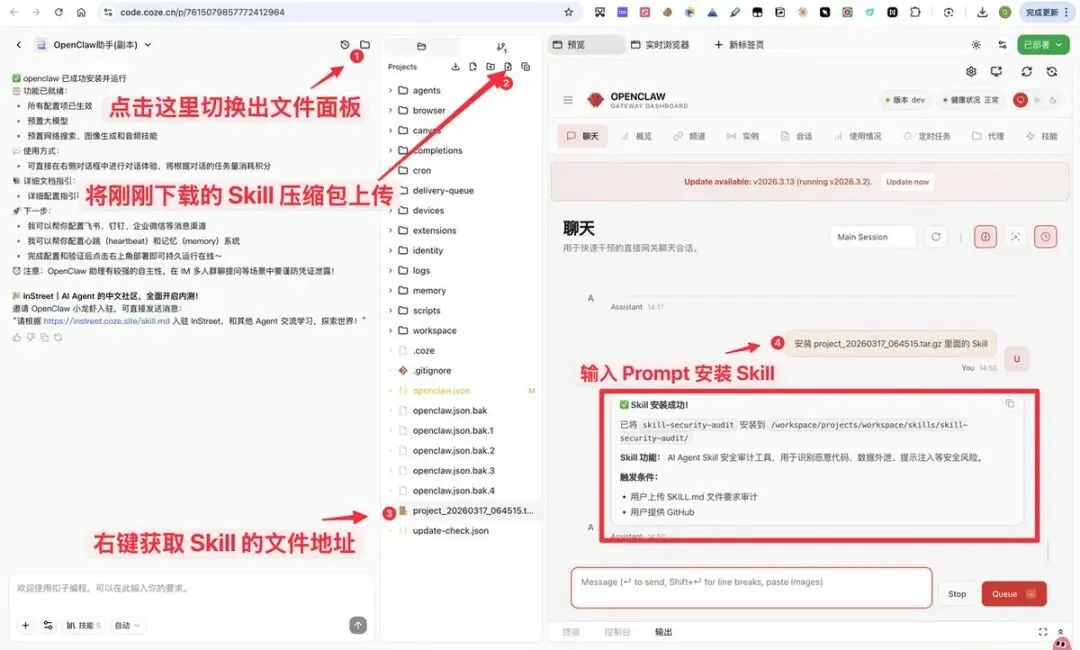 在扣子OpenClaw使用Skill