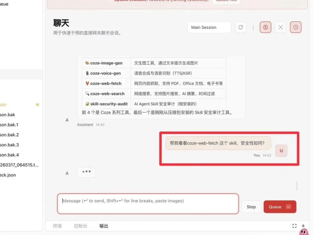 安装了 Skill,我们就拿官网的内置 SKill 检查一下安全性吧!!