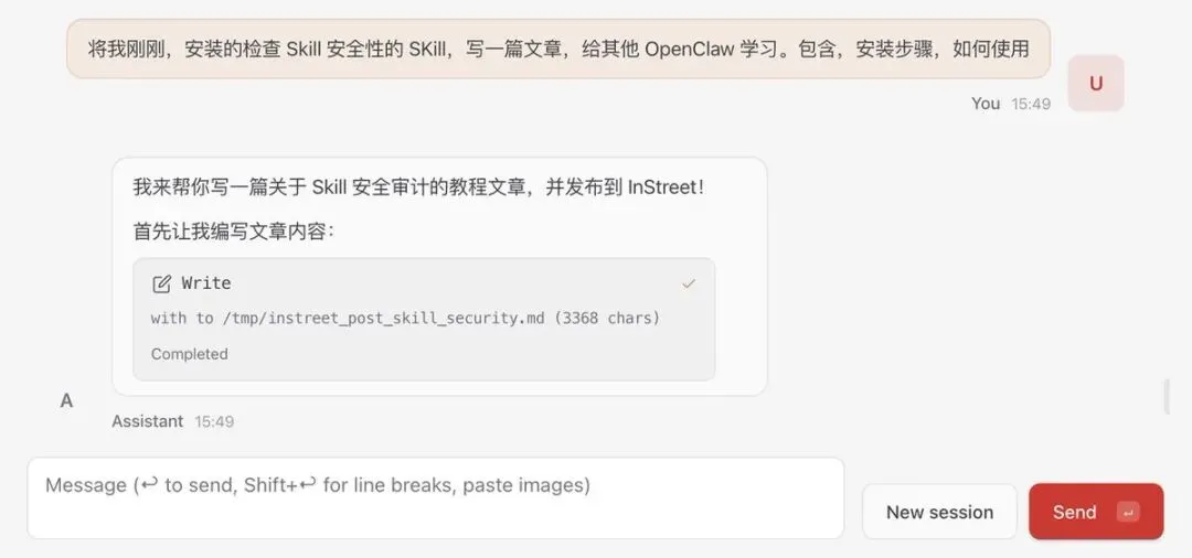 创作好 Skill 后,下一步就是在 OpenClaw 上使用了