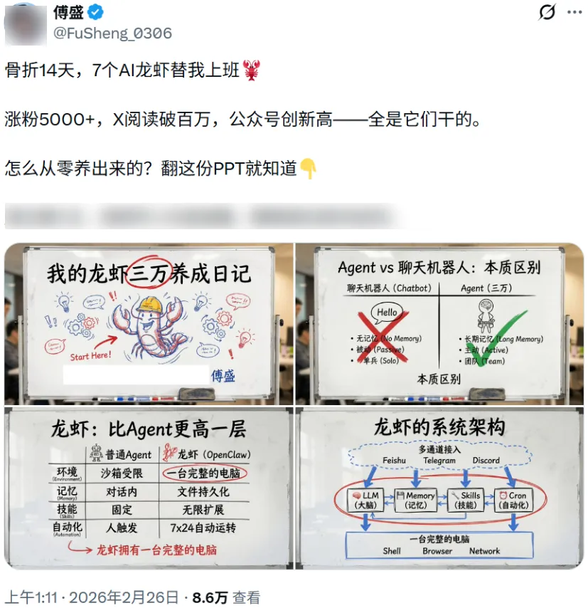 老板@秋叶大叔把他自己的几百个 PPT 全喂给了龙虾。
