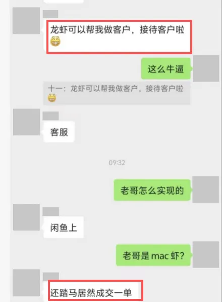 甚至还有人直接让龙虾接管客服,全自动接待聊天,奇迹般地实现了自动成交!