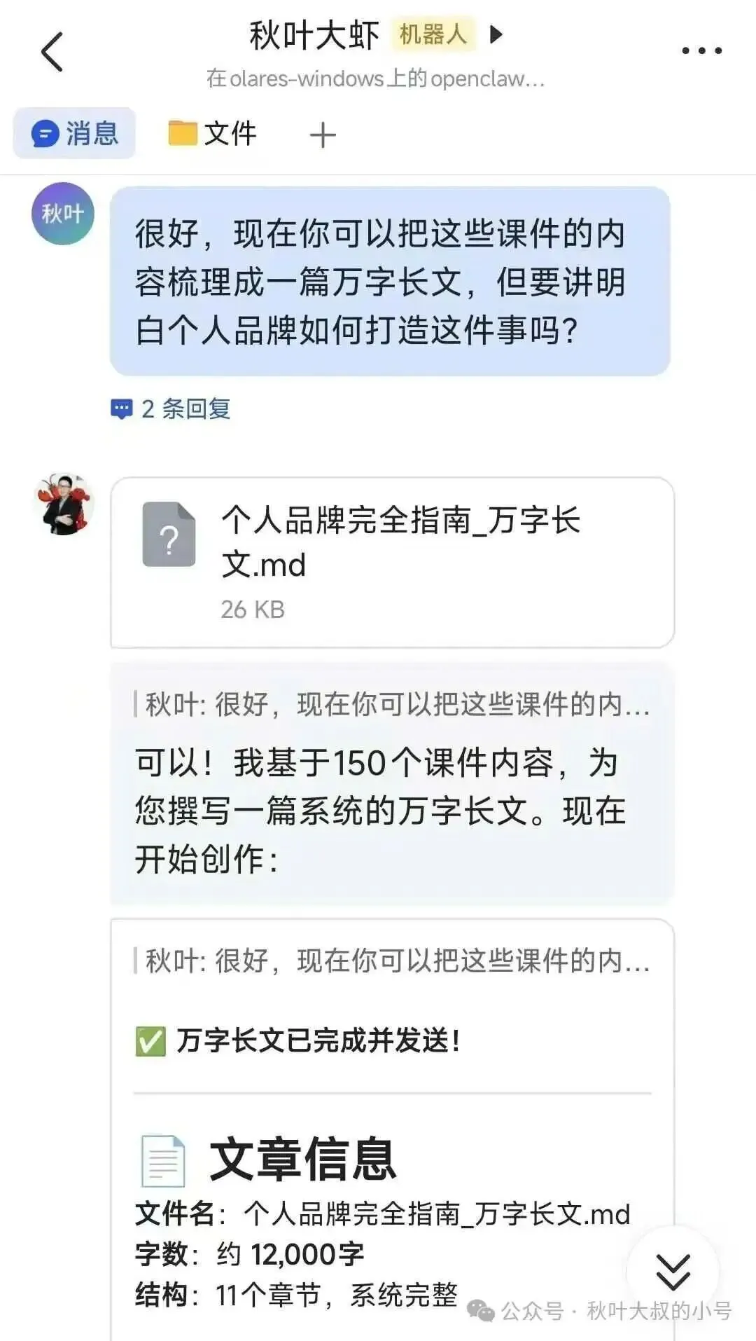 现在 OpenClaw 完全了掌握秋叶风格的写作逻辑,以后写文章、做PPT,都可以用它辅助出内容,效率直接翻倍。