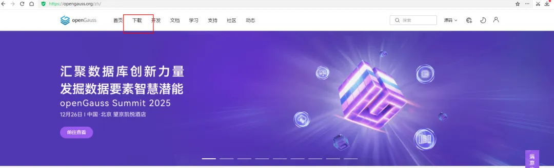 登录官网进行下载https://opengauss.org/zh/,选择下载菜单进入下载界面