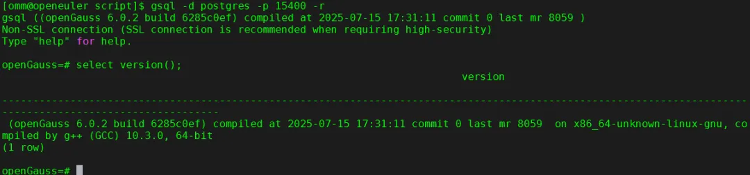 $ gsql -d postgres -p 15400 -r