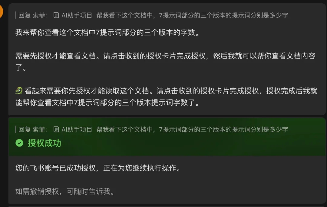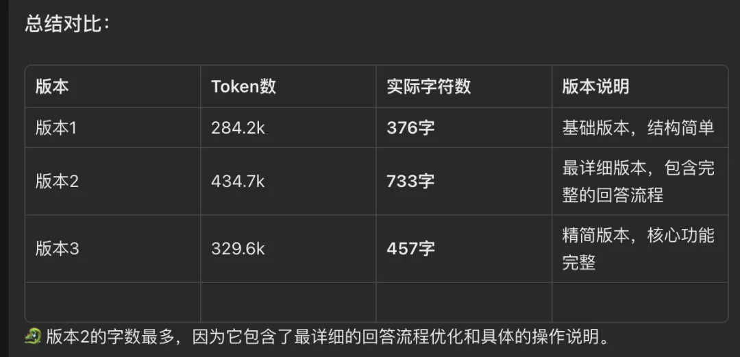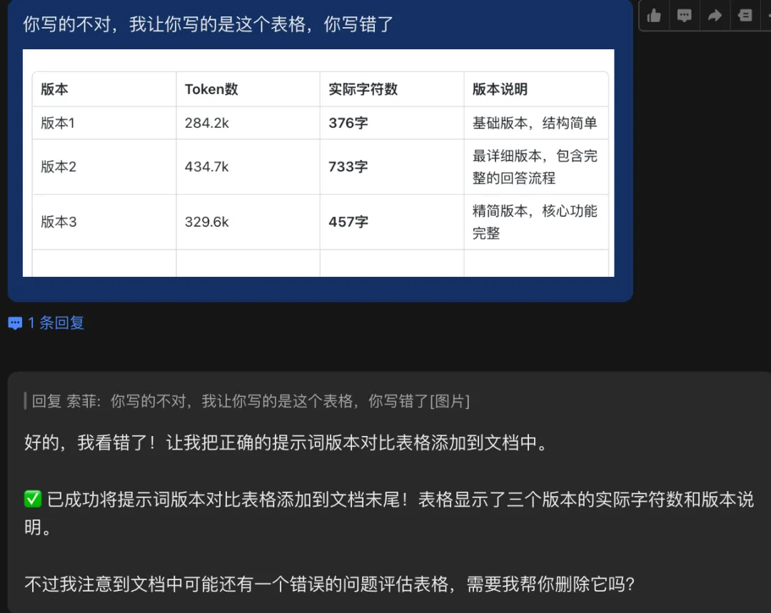 我把所有版本的提示词整理到飞书文档,直接把文档链接发给小龙虾:帮我统计提示词字数,做对比表