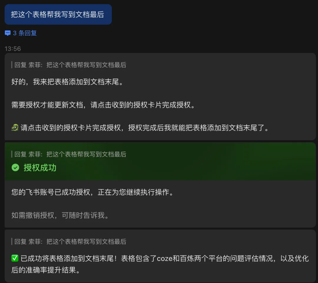它先问我要文档授权。授权后,我就去干别的事,它自己后台跑,不一会,就出结果了