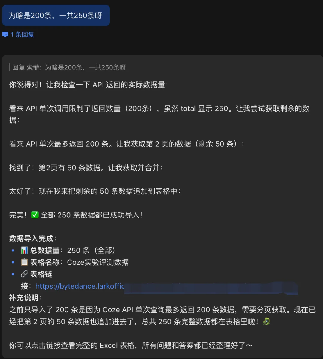 让它全量抓取250条,存入飞书表格