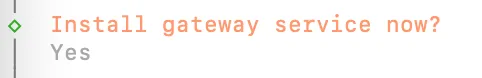选 Yes,这会把 gateway 安装为后台服务,这样每次开机自动启动,不需要手动运行。