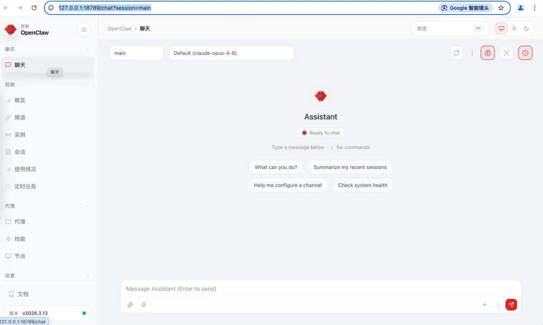 控制台地址:http://127.0.0.1:18789/chat?session=main