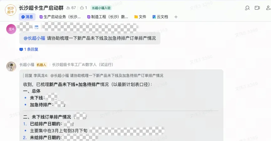 北汽旗下的长沙工厂 Agent “长超小福” 与员工进行生产启动的协作