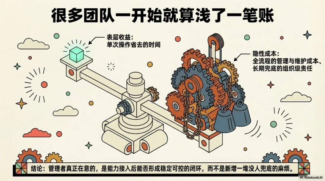 管理者真正在意的,是这个能力接入后,能不能形成稳定可控的闭环,而不是给团队新增一堆没人兜底的麻烦。