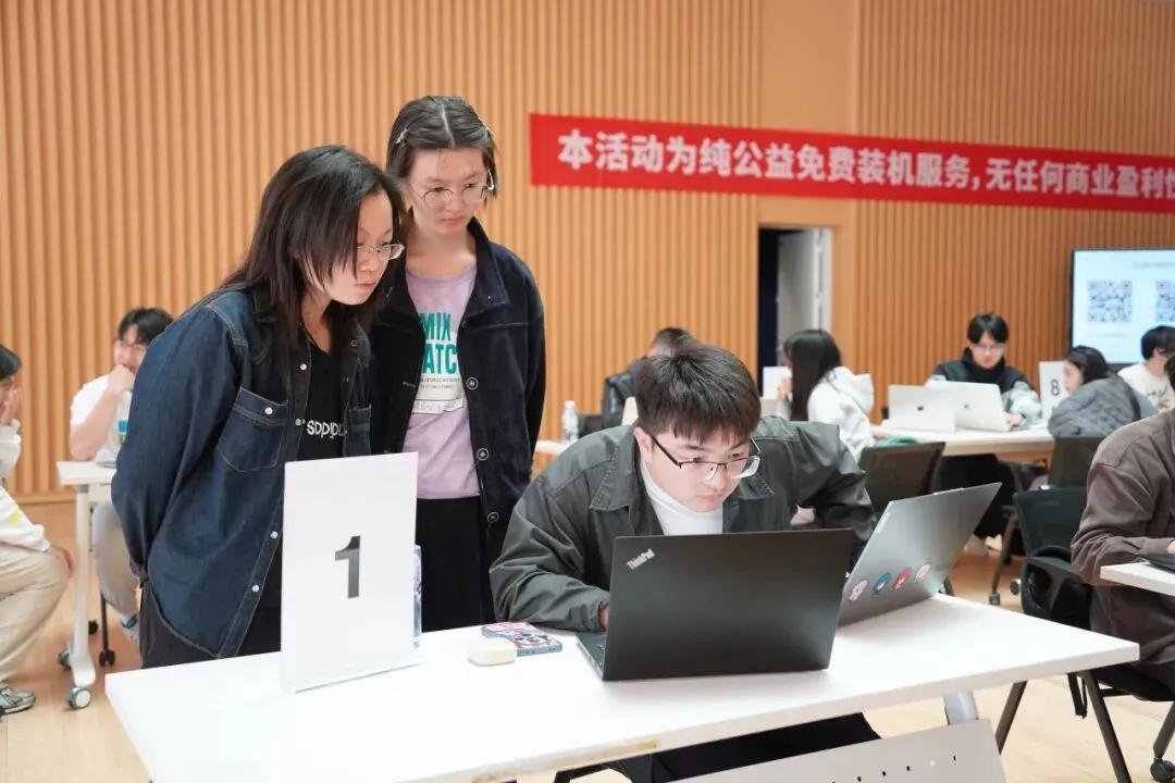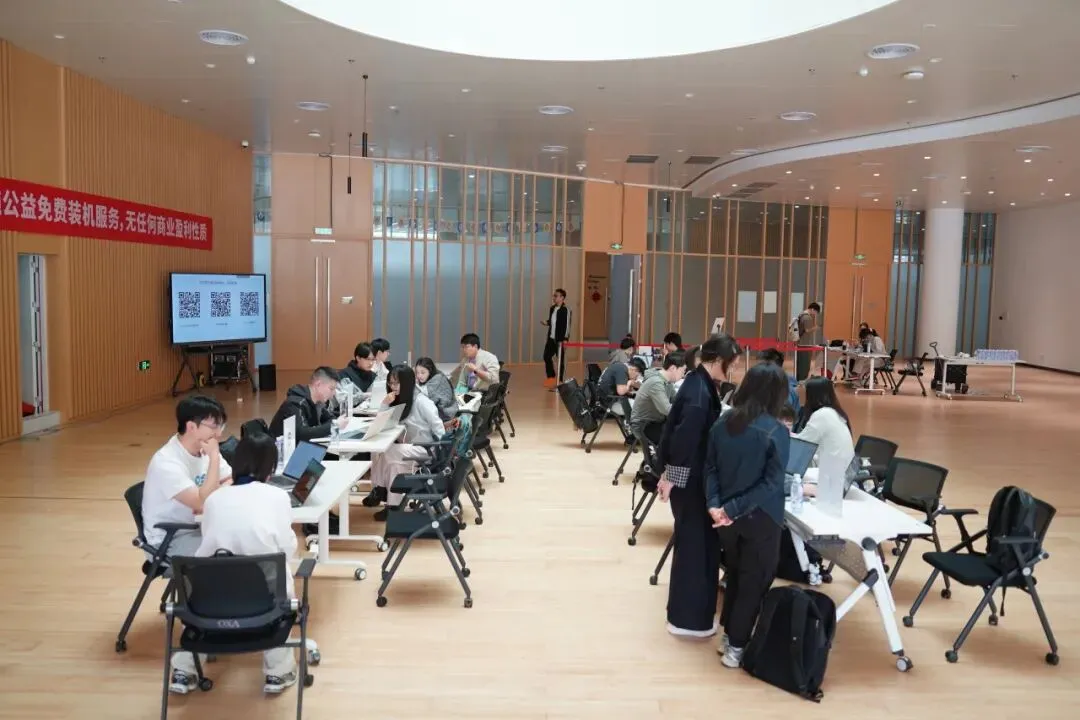 讲座结束后,活动进入一对一公益装机服务环节。来自信息枢纽的 9 位“龙虾福利官”分工明确、耐心细致,为到场师生提供全流程安装指导。